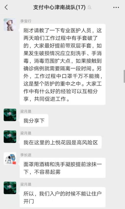 盖上暖和的被子,通过微信与第一、第二批干部交流下沉工作心得和防疫措施。