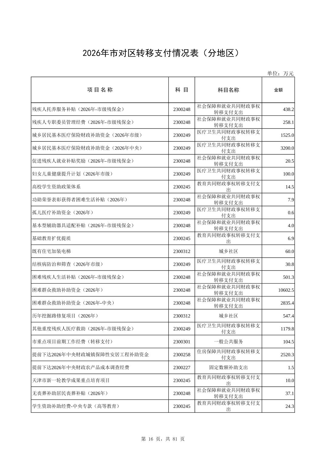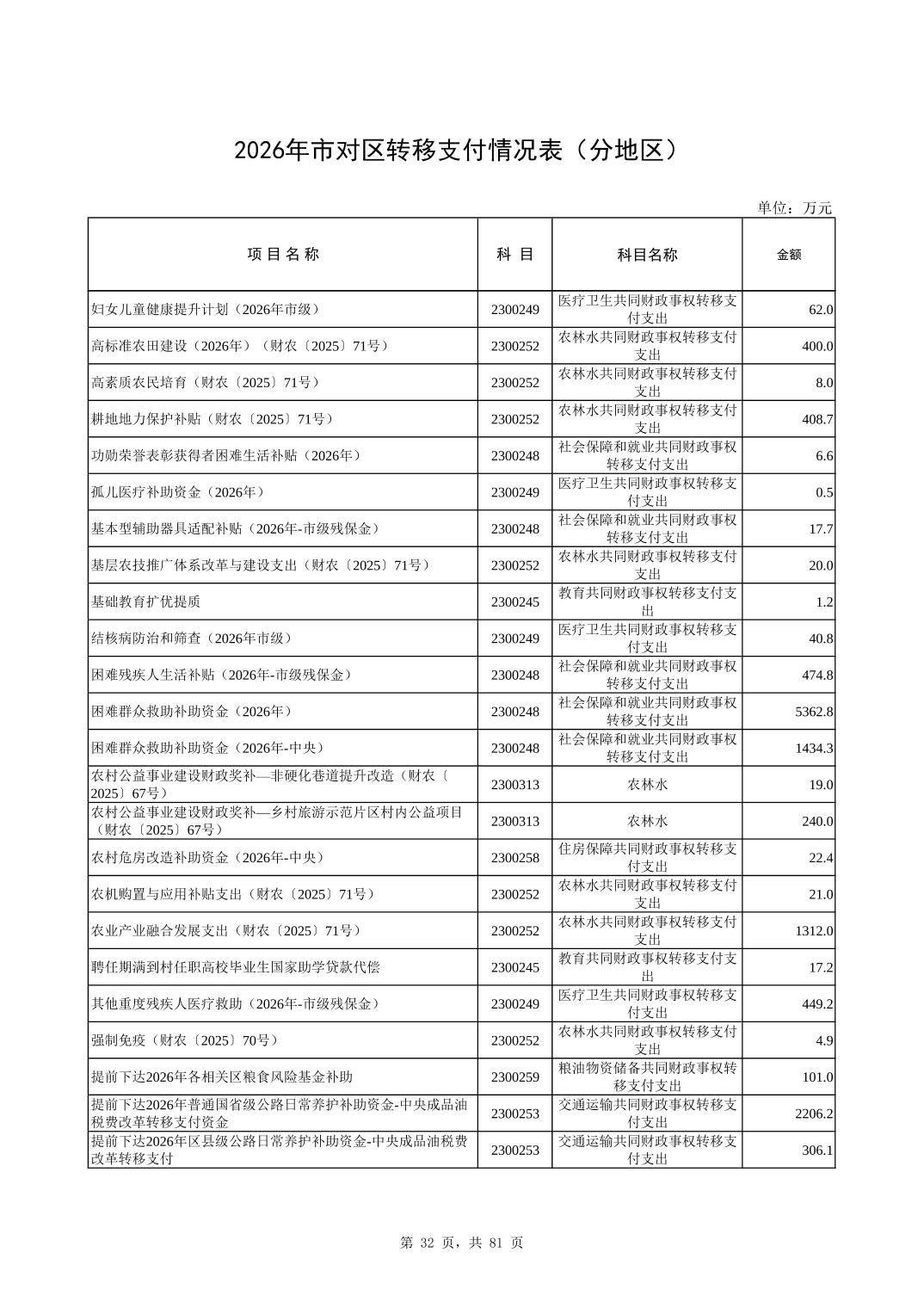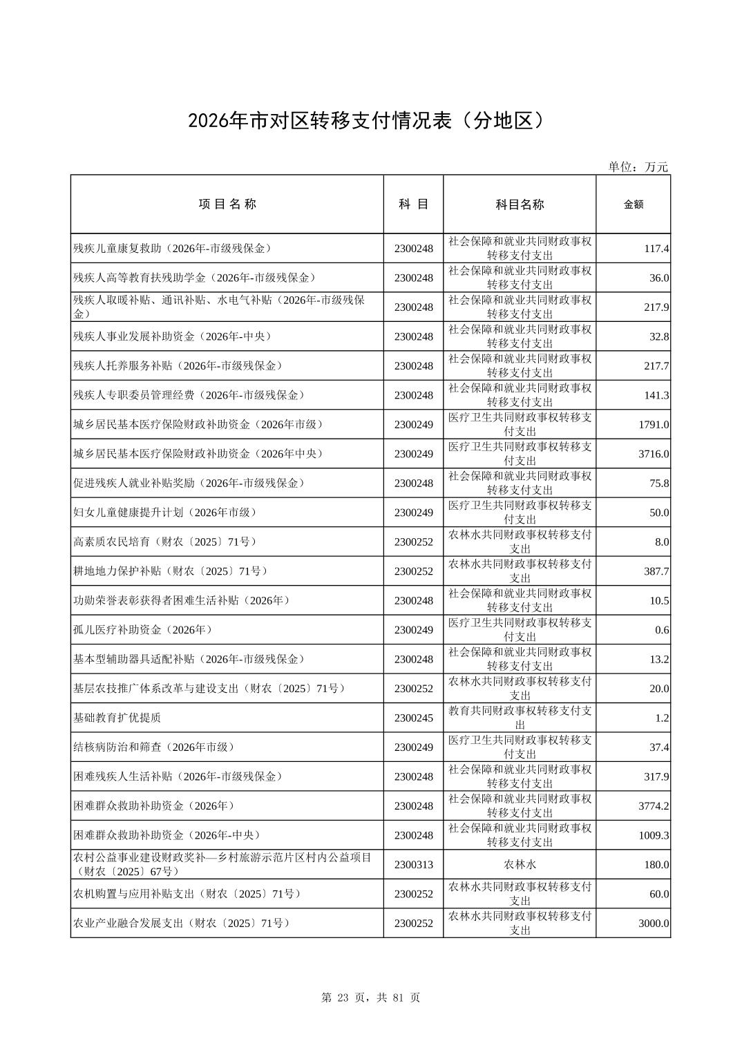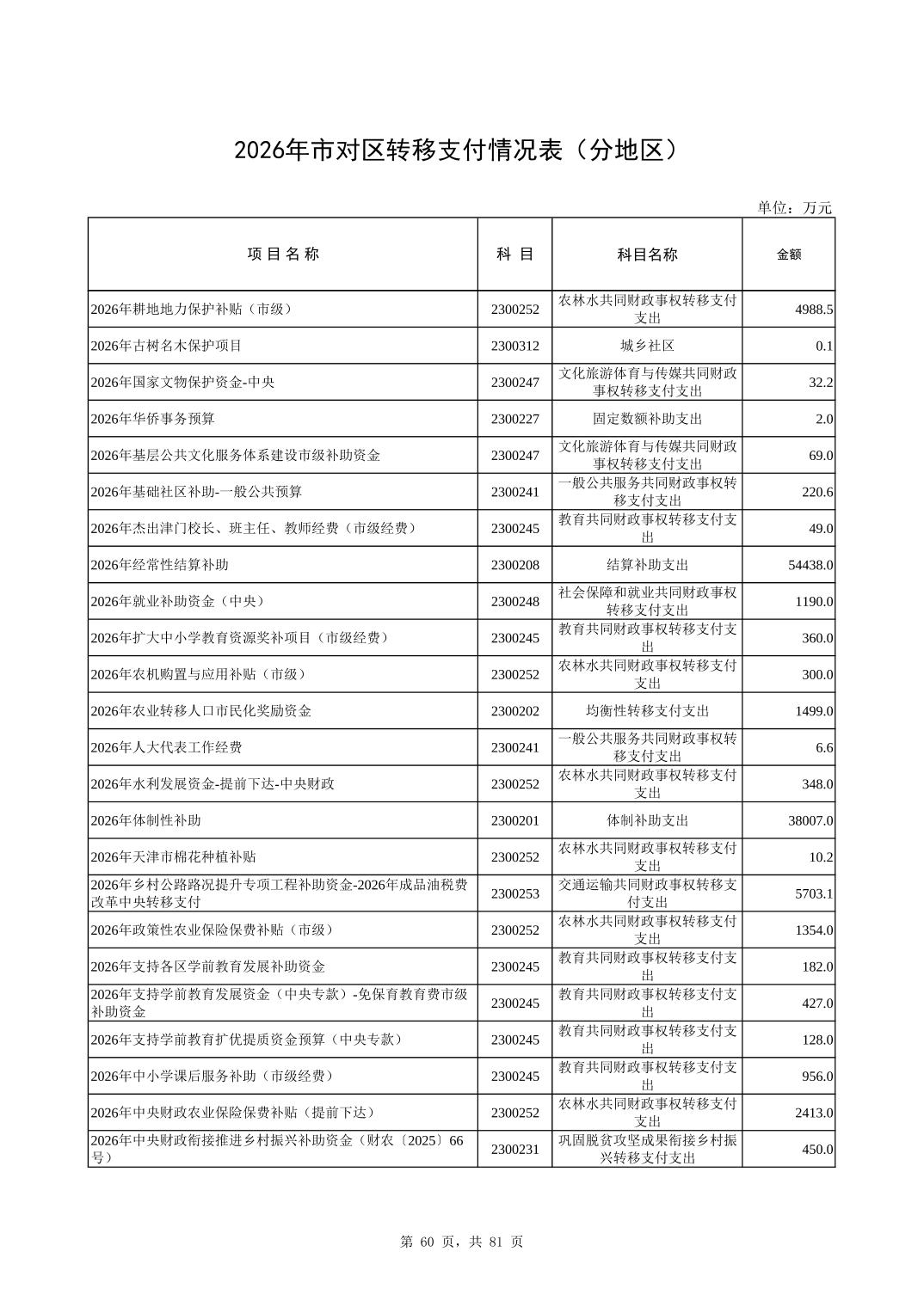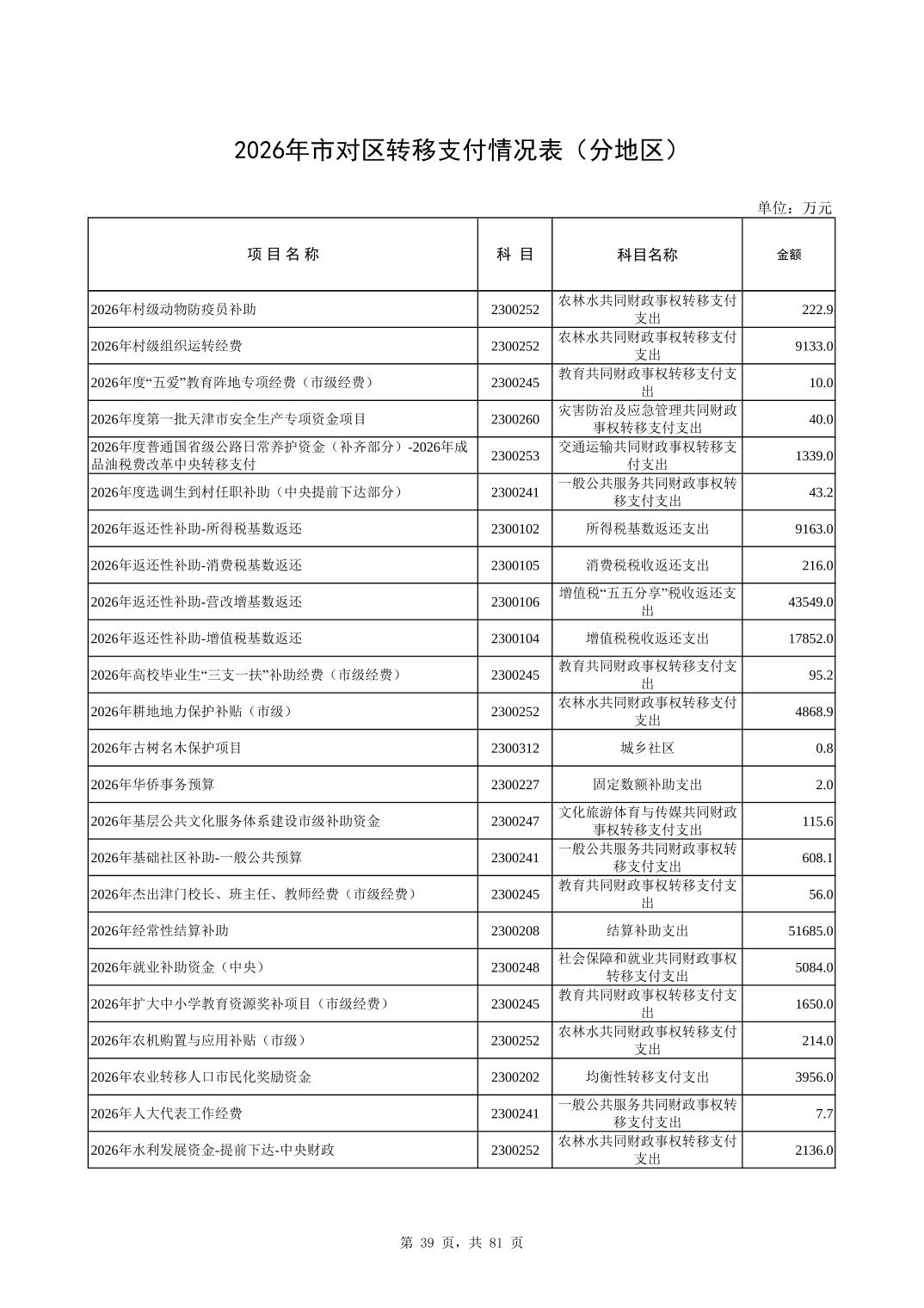 2026年市对区转移支付情况表(分地区)