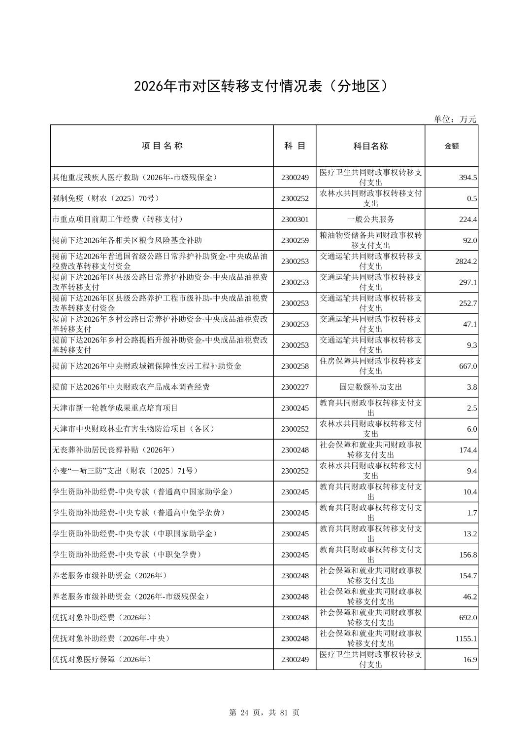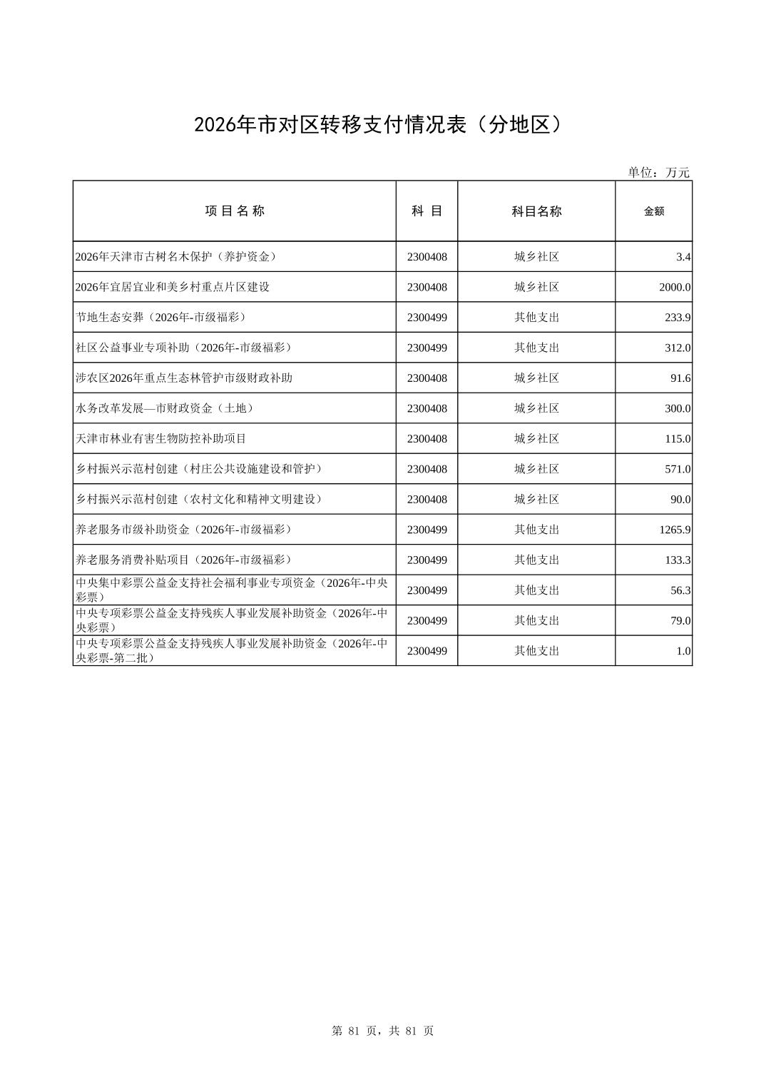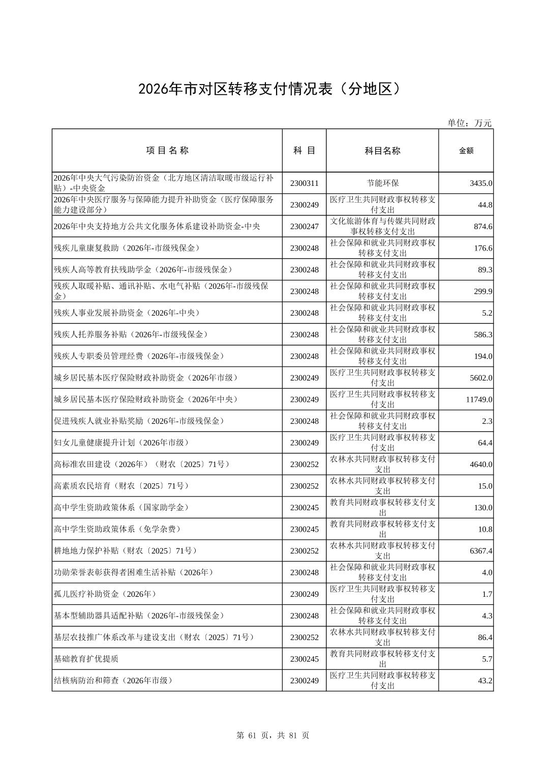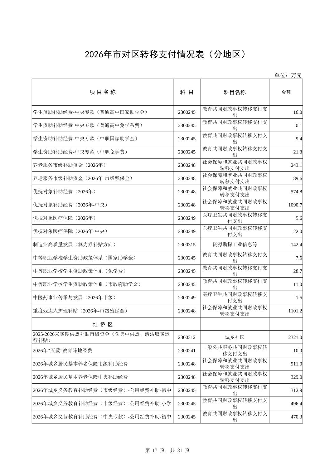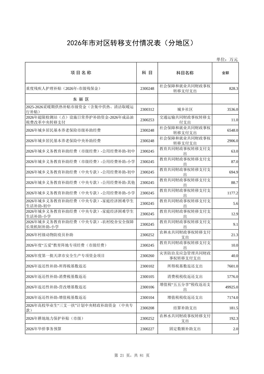 2026年市对区转移支付情况表(分地区)