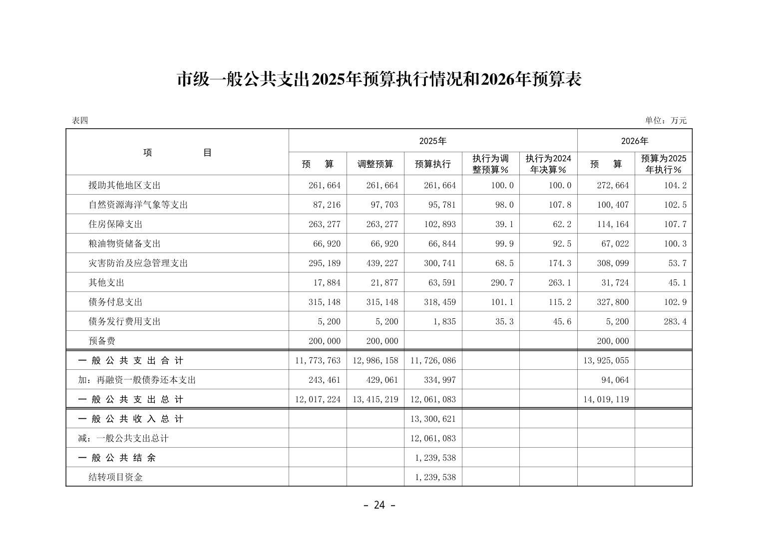 天津市2025年预算执行情况和2026年预算(草案)