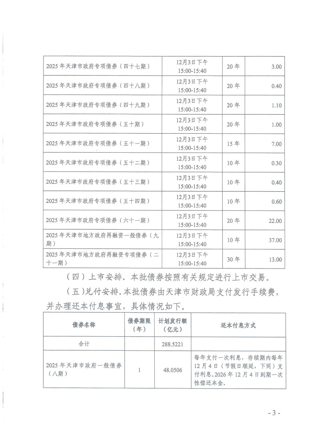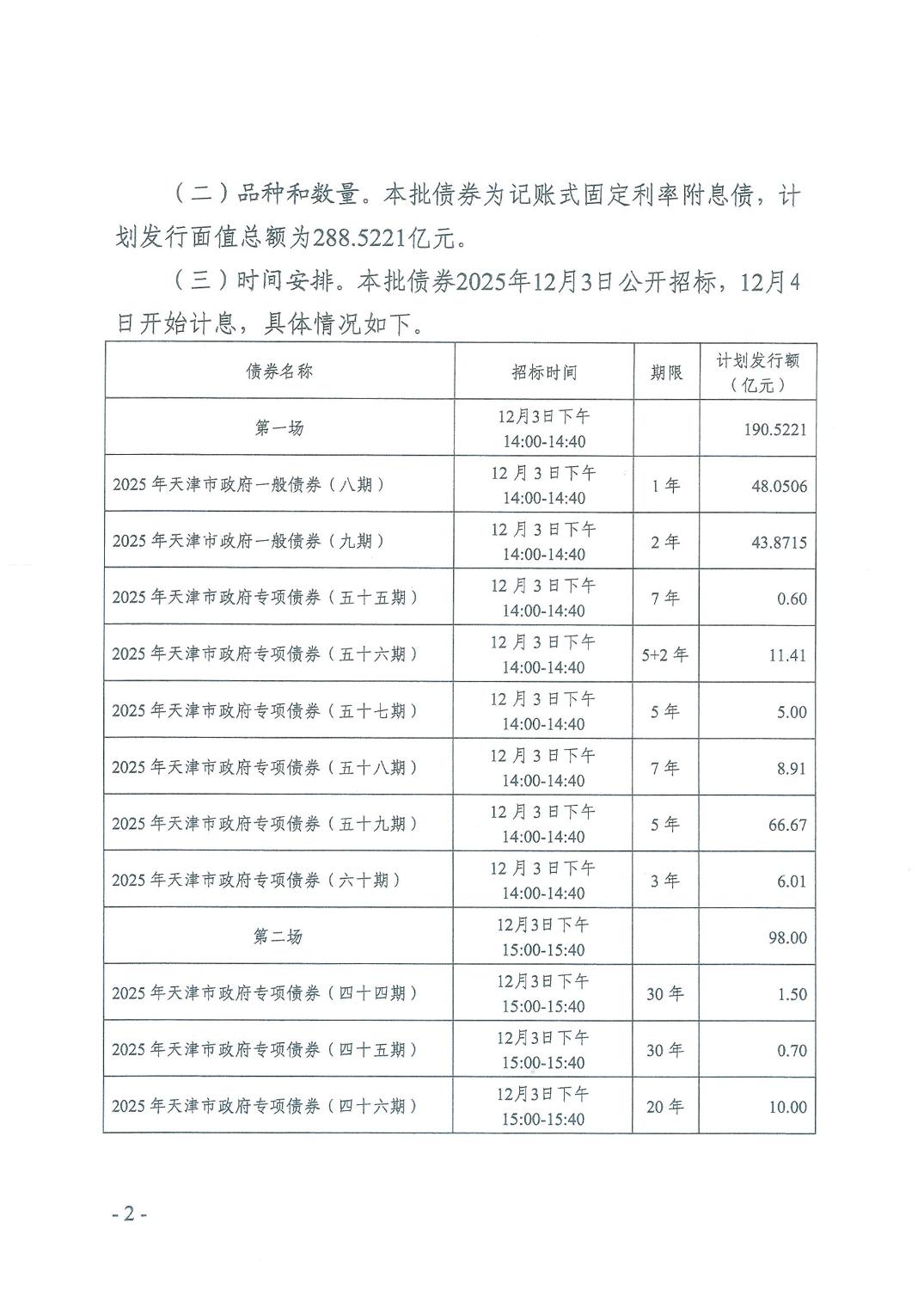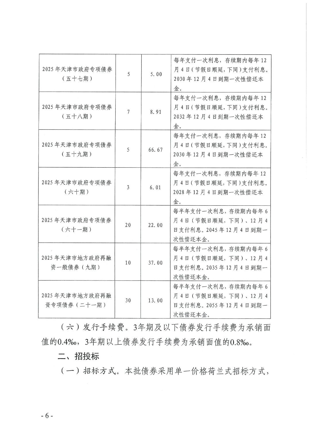 天津市财政局关于发行2025年第十批天津市政府债券有关事项的通知