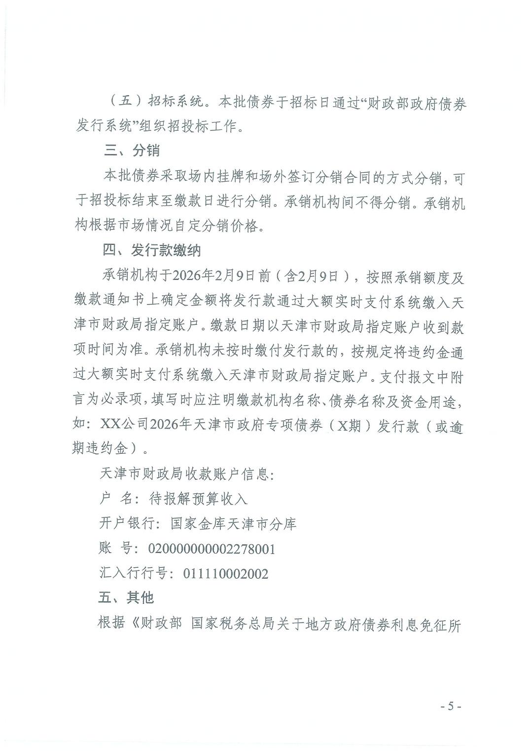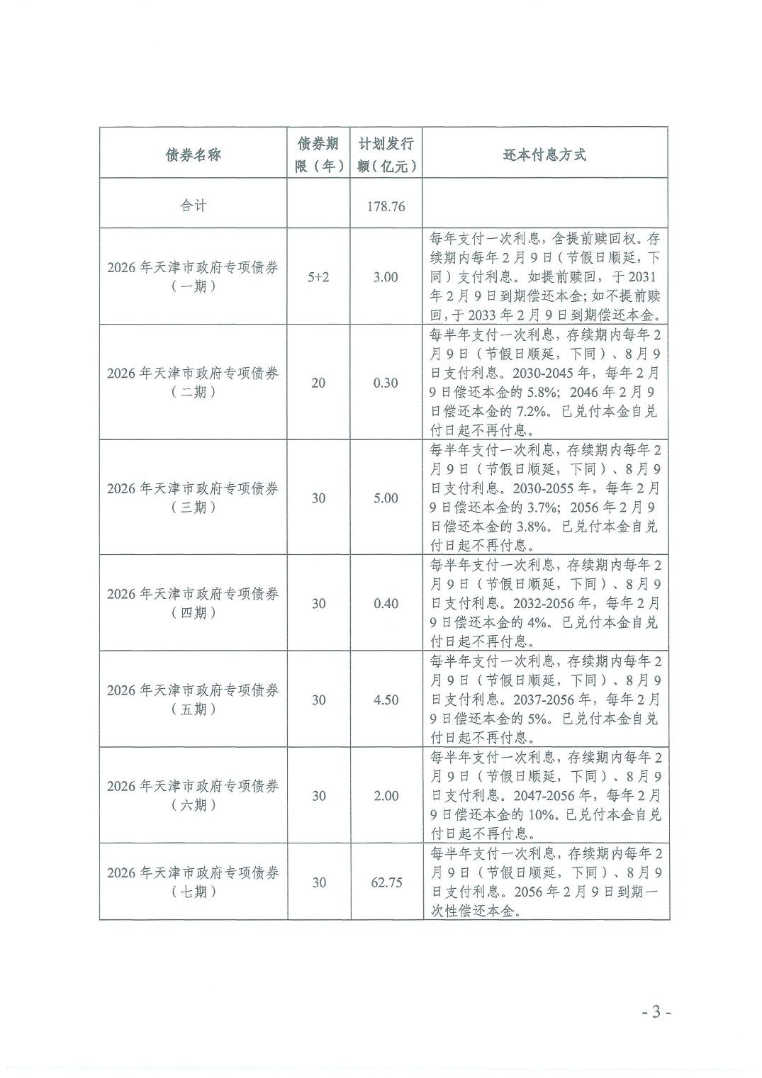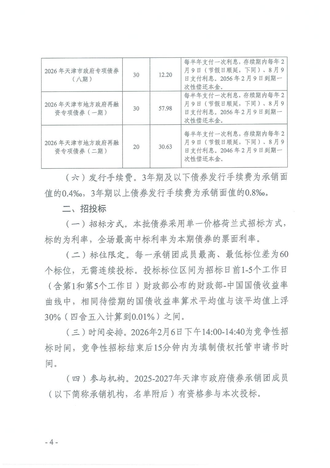 天津市财政局关于发行2026年第一批天津市政府债券有关事项的通知