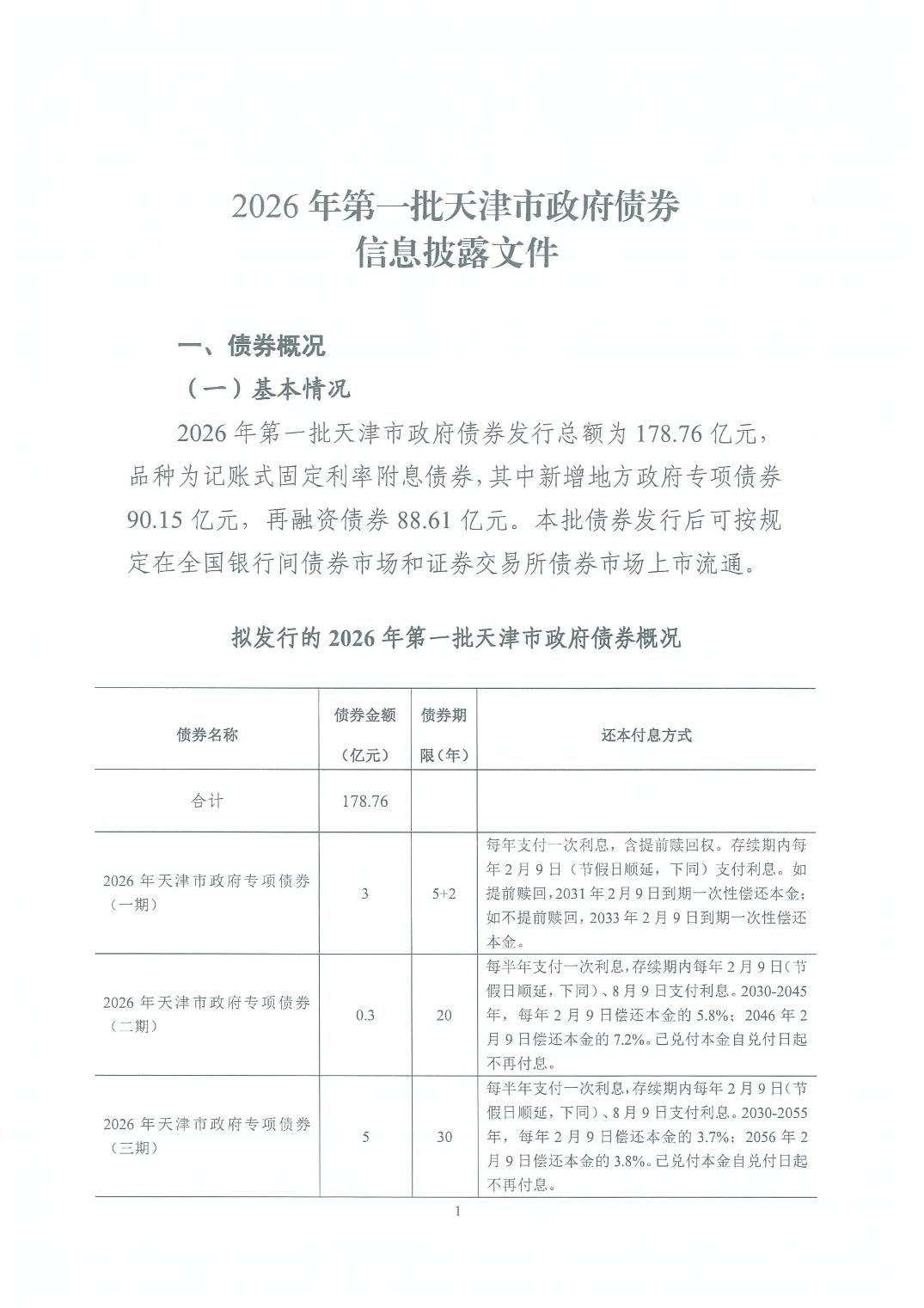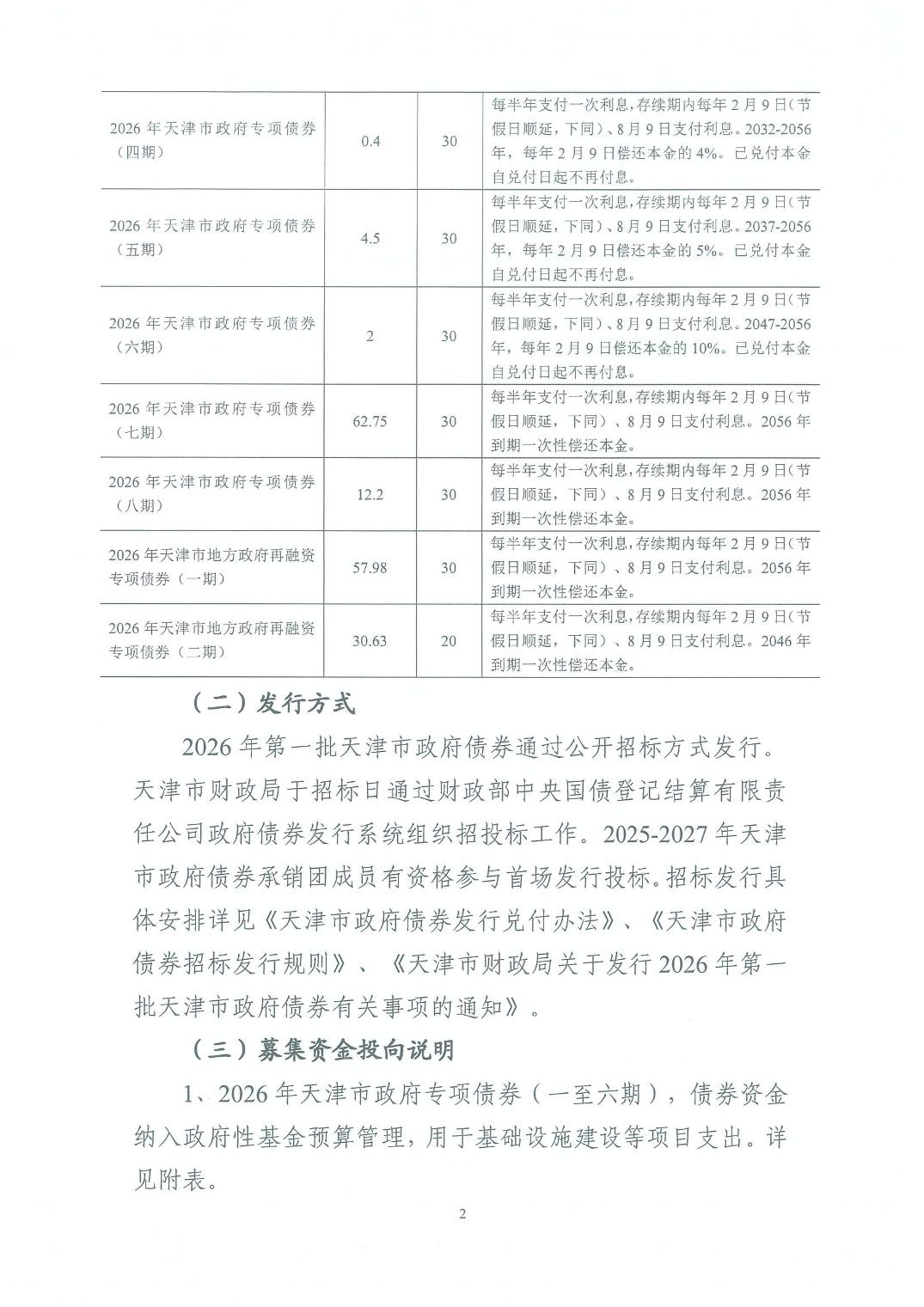 天津市2026年第一批新增政府专项债券发行明细表.pdf